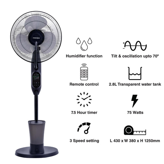 Powersonic Pedestal Oscillating Misting Fan - Black - 3 Speed